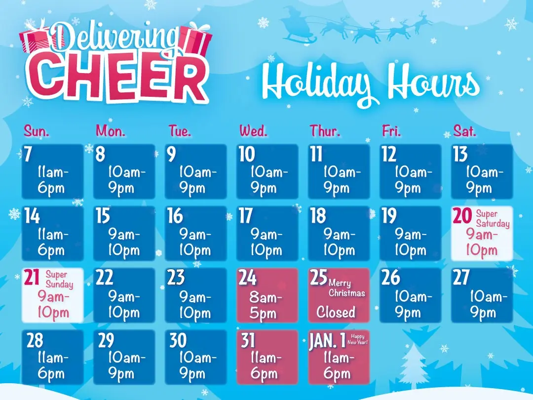 - Tue, Dec 23: 9am-10pm